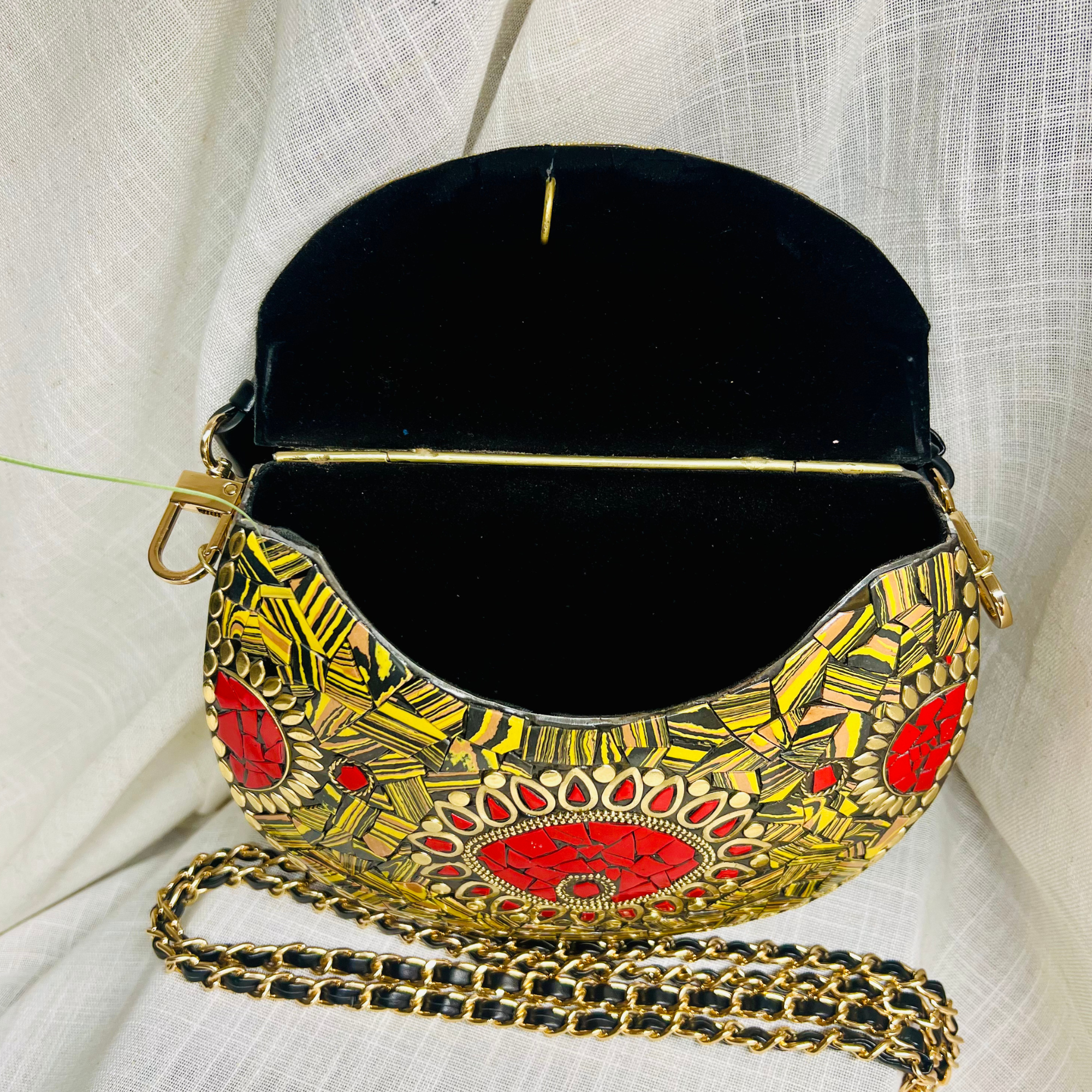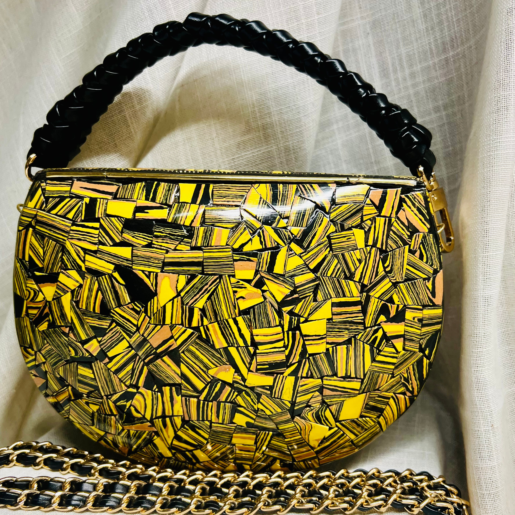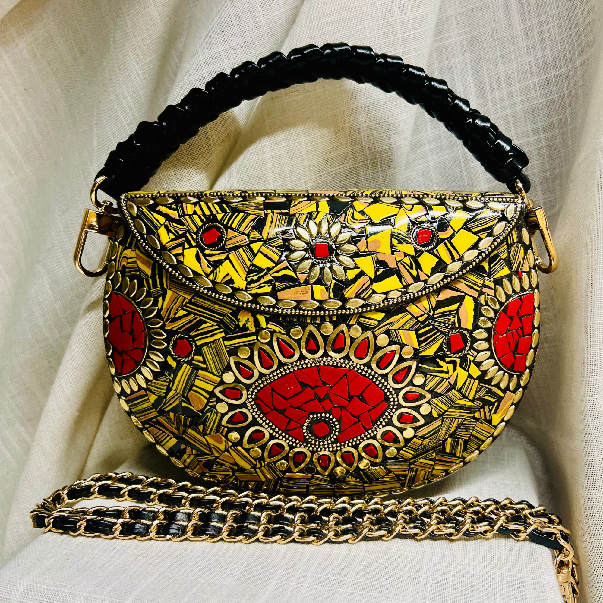 The Phoenix embodies transformation and strength. Each bag is meticulously handcrafted, with every tile and stud placed individually by artisans to create a fiery, one-of-a-kind statement piece.